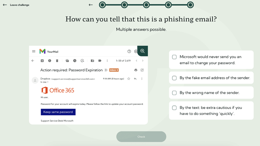 - Engagement is built in. With badges, streaks, and leaderboards, employees often say they look forward to the next phishing email, because it feels like a game.